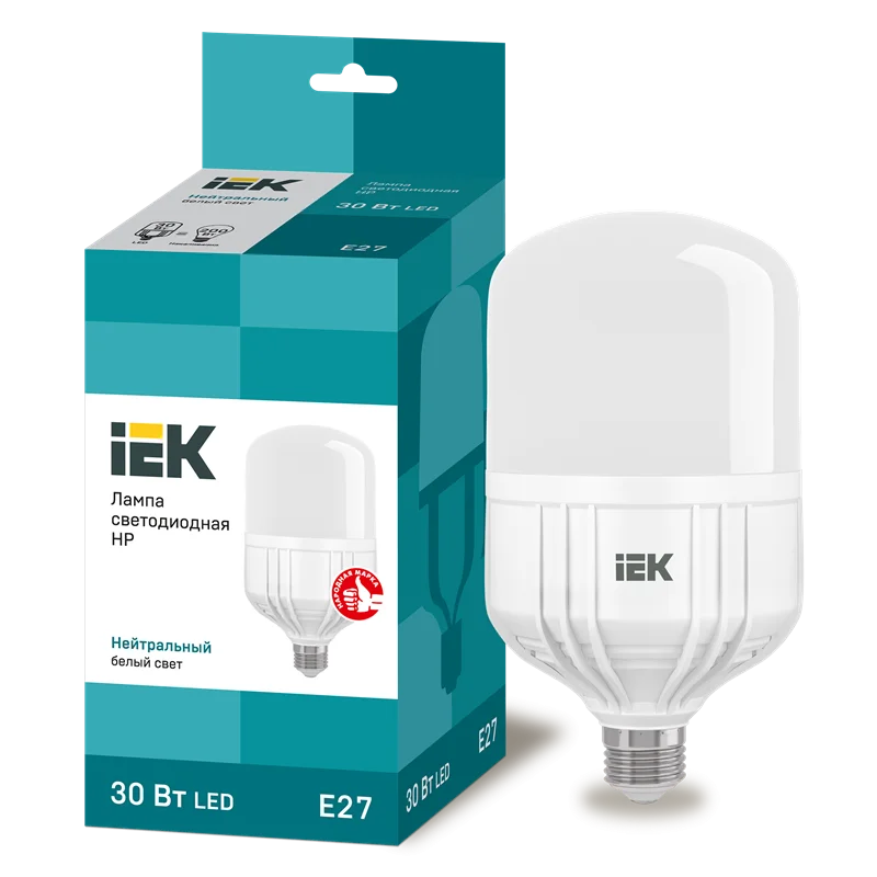 Лампа LED HP 30Вт 230В 4000К E27 IEK LLE-HP-30-230-40-E27
