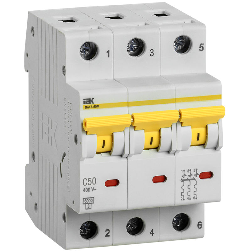 KARAT Авт. выкл. ВА47-60M 3P C 50А 6кА IEK MVA31-3-050-C