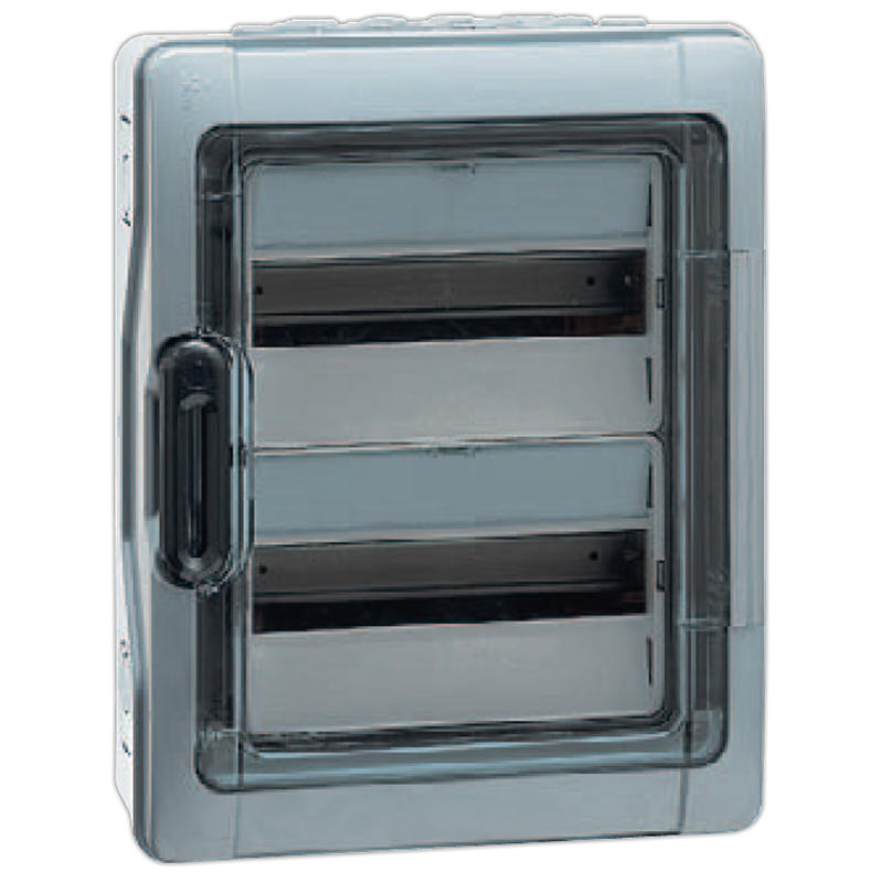 Шкаф накладной Plexo на 24 (2х12) модуля с шинами N+PE с прозрачной дверью IP65 Legrand 601982