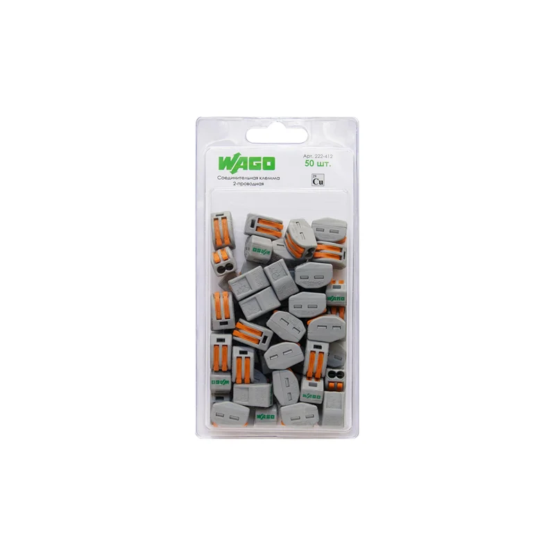 Клеммник 2 (одножильных или многожильных) х 0,08-4 мм 32A Cu [уп. 50шт] WAGO 222-412