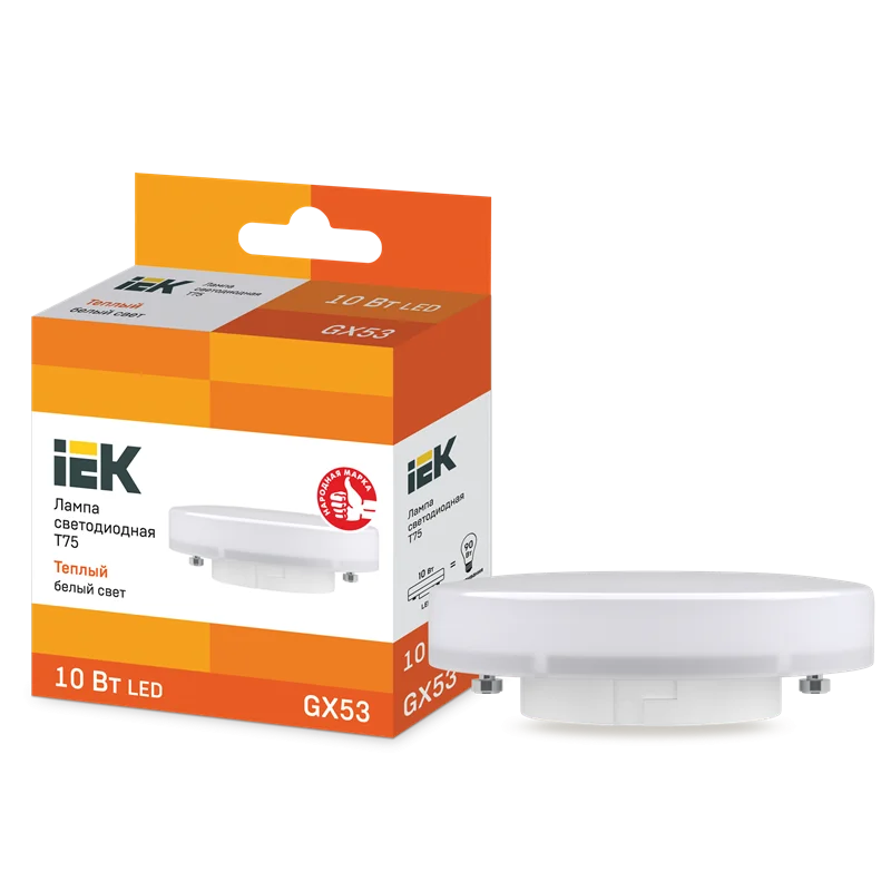 Лампа LED T75 таблетка 10Вт 230В 3000К GX53 IEK LLE-T80-10-230-30-GX53