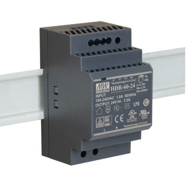Блок питания 24В, 2.5А, 60Вт MEAN WELL HDR-60-24
