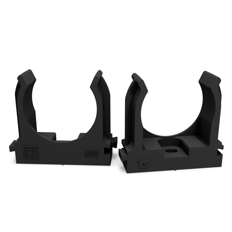 Крепеж-клипса для труб для монтажного пистолета черная в п/э д32 Промрукав PR13.0134
