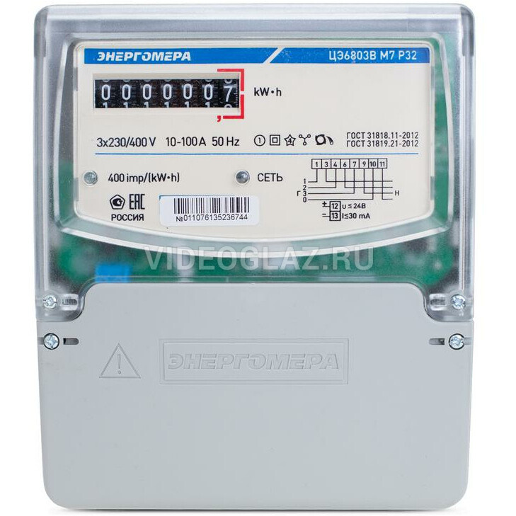 Счетчик трехфазный однотарифный ЦЭ6803В 1 230В 10-100А 3ф.4пр. М7Р32 Энергомера 101003001011076