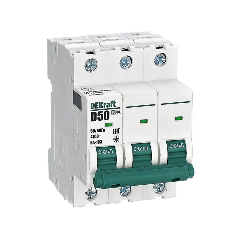 Авт. выкл. 3Р 50А х-ка D ВА-103 6кА нов. DEKraft 12374DEK