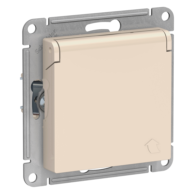 ATLASDESIGN РОЗЕТКА с заземл. со шторк. с крышкой, 16А, IP20, механизм, БЕЖЕВЫЙ ATN Systeme Electric