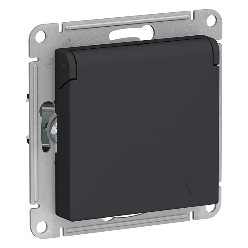 Розетка, скрытый монтаж, с заземлением, с крышкой IP20, со шторками, карбо ATN00104 Systeme Electric