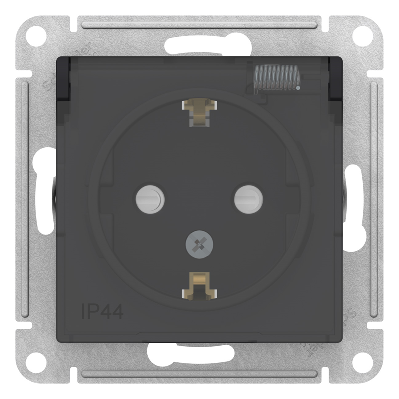 Розетка IP44 AQUA, скрытый монтаж, с заземлением, с крышкой,со шторками, карбон ATN Systeme Electric