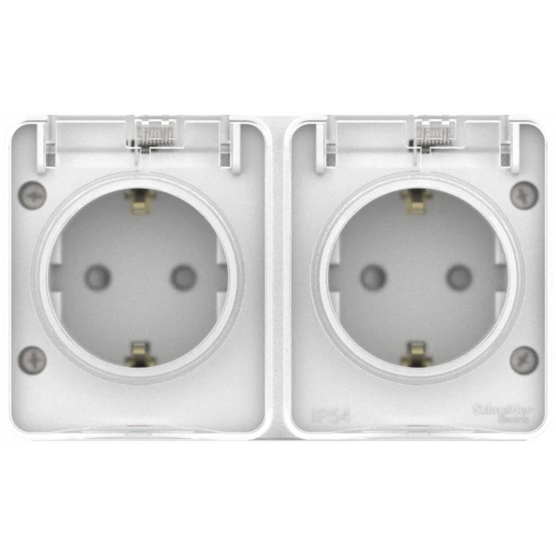 AtlasDesign PROFI IP54 О/У РОЗЕТКА двойная с заземлением со шторками 16А, БЕЛЫЙ ATN Systeme Electric