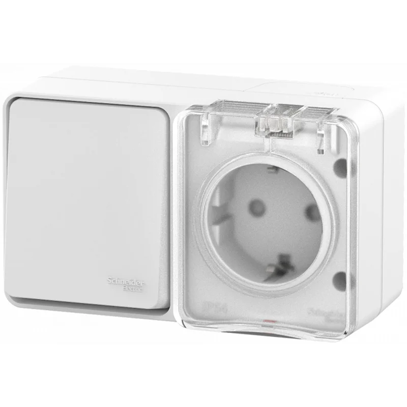 AtlasDesign PROFI IP54 О/У БЛОК: РОЗ. з/к со шт. 16А, ВЫКЛ.1-клав.10А, БЕЛЫЙ ATN540 Systeme Electric