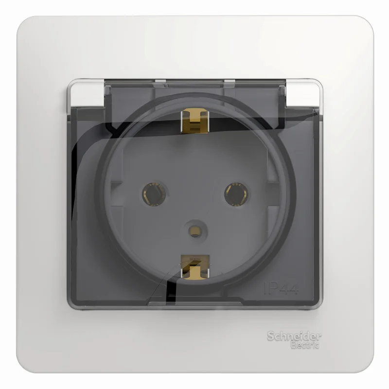 GLOSSA РОЗЕТКА с заземлением со шторками с крышкой, 16А, IP20, в сборе, БЕЛЫЙ GSL00 Systeme Electric