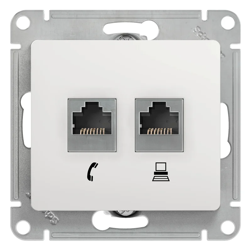GLOSSA РОЗЕТКА двойная RJ11+RJ45, кат.5Е, механизм, БЕЛЫЙ Systeme Electric GSL000185