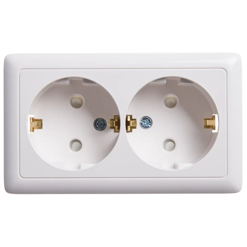 ХИТ О/У РОЗЕТКА двойная с заземлением со шторками, 16А, БЕЛЫЙ. Россия Systeme Electric RA16-239-B