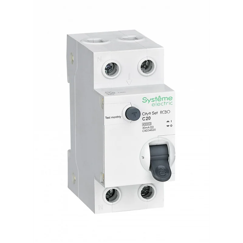 City9 Set Авт. выкл. диф. тока (АВДТ) 1P+N С 20А 4.5kA 30мА Тип-AС 230В Systeme Electric C9D34620