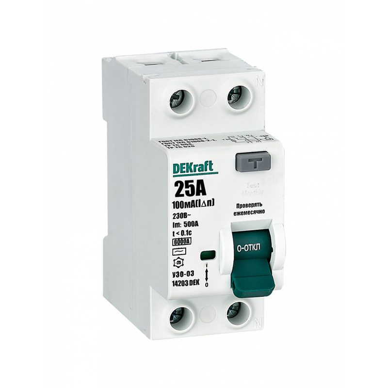 ВДТ 2P 25А 10мА тип AC 6кА УЗО-03 нов. DEKraft 14203DEK