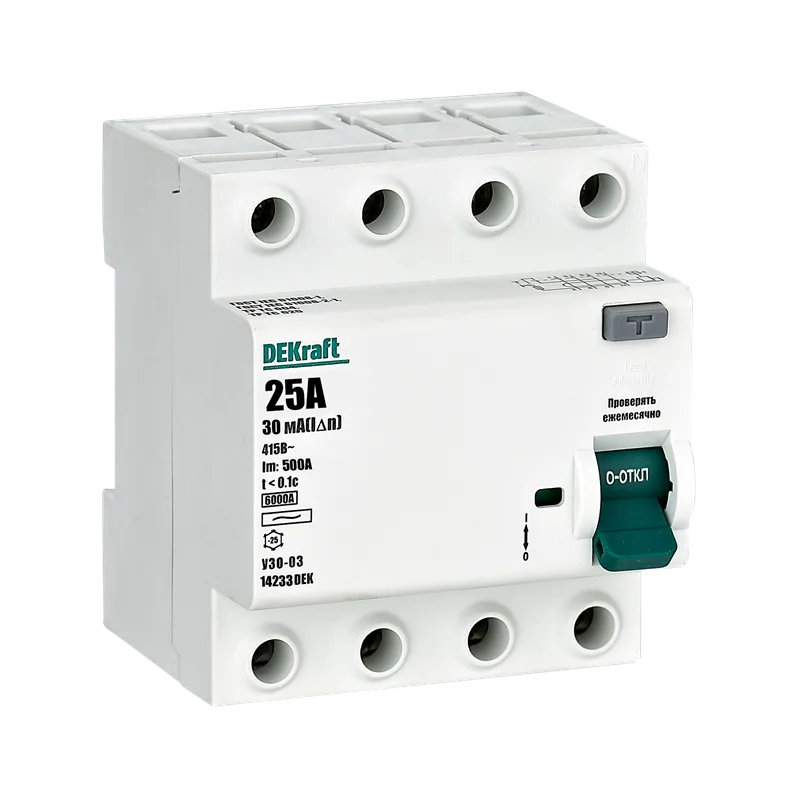 ВДТ 4P 25А 30мА тип AC 6кА УЗО-03 нов. DEKraft 14233DEK