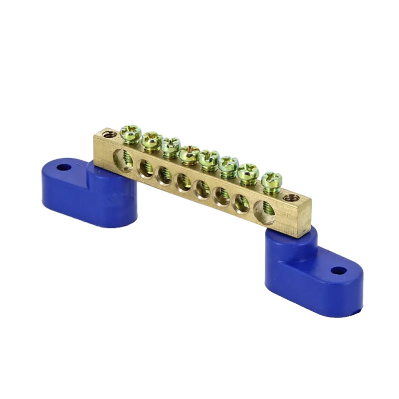 Шина "0" N (8х12мм) 8 отверстий латунь 2 синих угловых изолятора PROxima EKF sn0-125-08-2