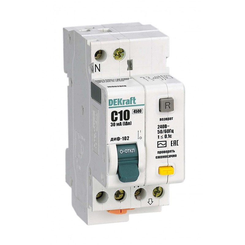 АВДТ 1Р+N 10А 30мА тип AC х-ка С ДИФ-102 нов. 4,5кА DEKraft 16002DEK