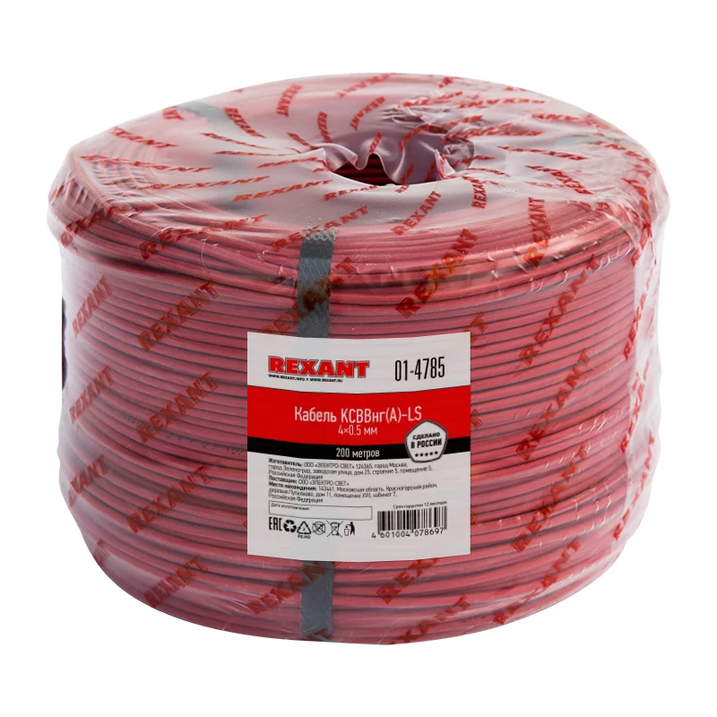 Кабель сигнальный KСВВнг(А)-LS 4х0,5 мм, бухта 200м Rexant 01-4785