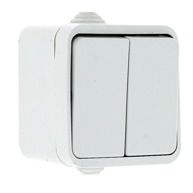Прага Выключатель 2-клавишный 10А IP44 белый EKF EKV10-023-10-44