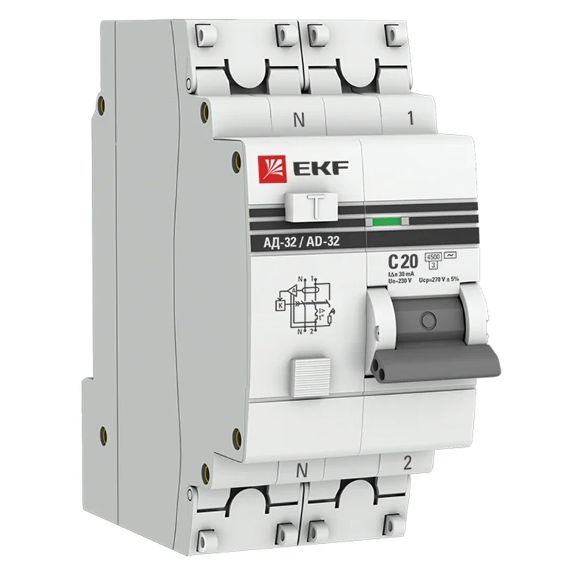 Дифференциальный автомат АД-32 1P+N 20А/30мА (хар. C, AC, электронный, защита 270В) 4,5кА PROxim EKF