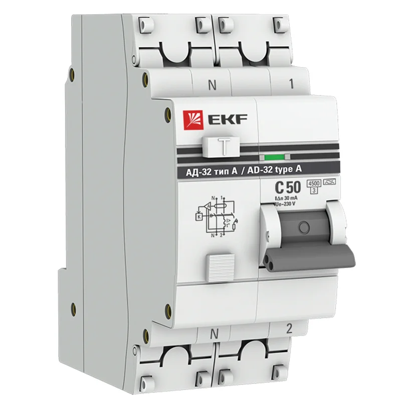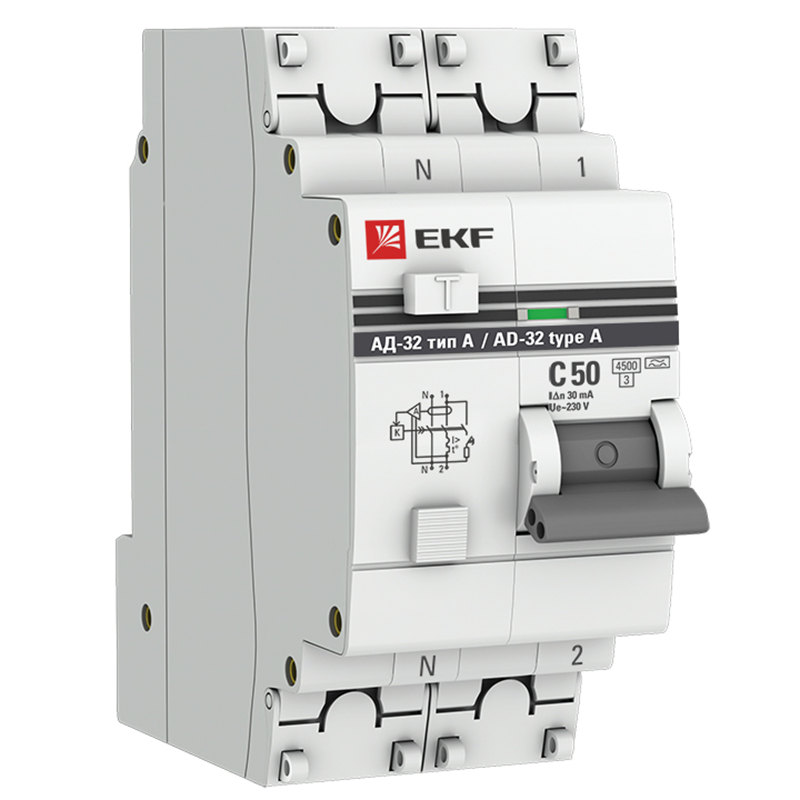 Дифференциальный автомат АД-32 1P+N 50А/30мА (тип А) PROxima EKF DA32-50-30-a-pro