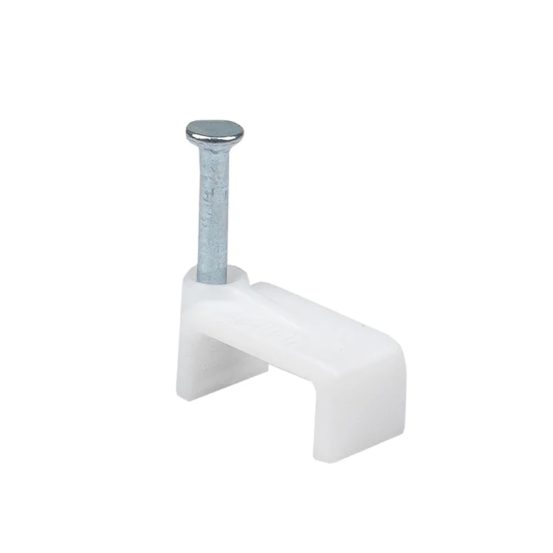 Материал: полипропилен, самозатухающий, без галогенов|Гвоздь: закаленная оцинкованная сталь, не подвержен коррозии|Поставляется в комплекте с уже вставленным гвоздем|На каждой скоб